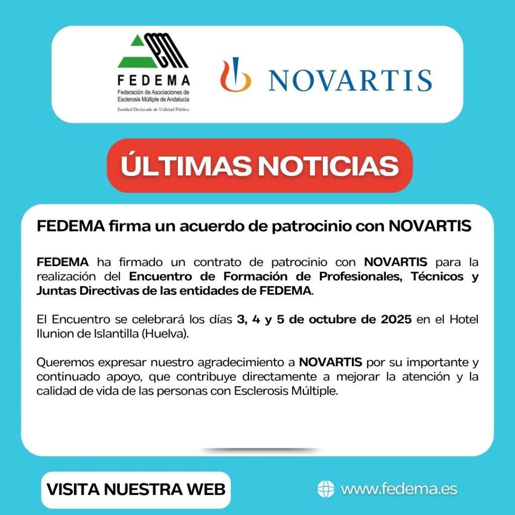 FEDEMA ha firmado un contrato de patrocinio con NOVARTIS para la realización del Encuentro de Formación de Profesionales, Técnicos y Juntas Directivas de las entidades de FEDEMA.
