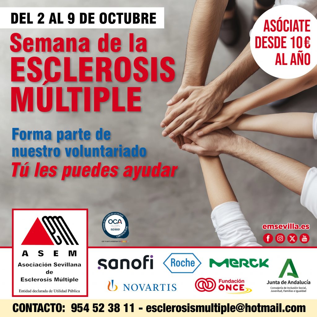 La Asociación Sevillana de Esclerosis Múltiple tiene previsto organizar una Jornada Informativa y de Sensibilización el próximo 9 de octubre, dentro de las actividades previstas en la “Semana de Esclerosis Múltiple en Andalucía”.