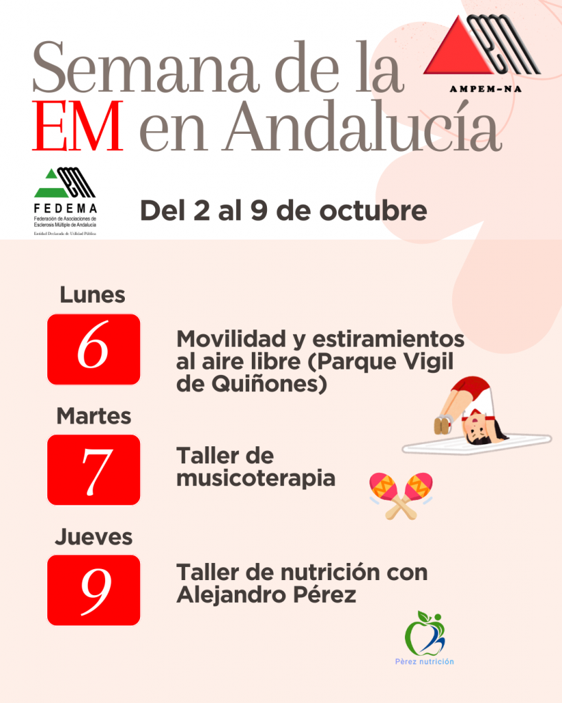 Con motivo de la Semana de la Esclerosis Múltiple en Andalucía (2 al 9 de octubre), se desarrollarán actividades en todas las provincias andaluzas, con el objetivo de dar visibilidad a la enfermedad y apoyar a las personas afectadas y sus familias.