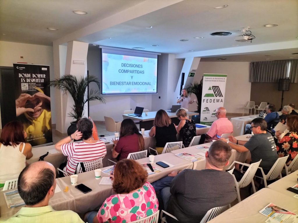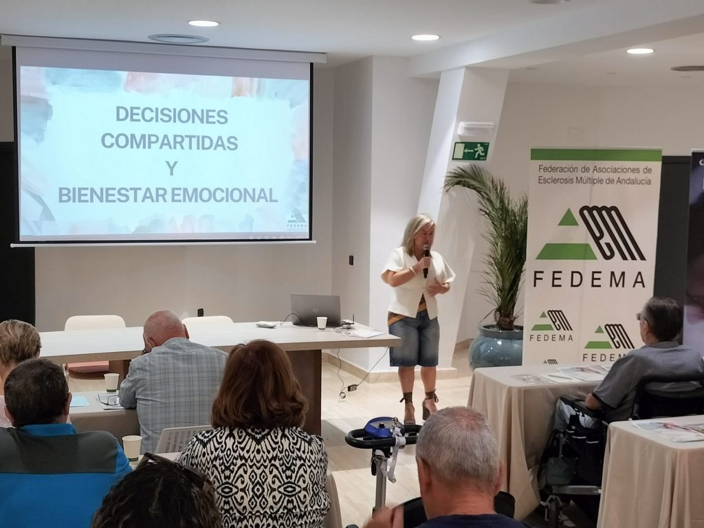 La psicóloga de FEDEMA Reyes Valdés Pacheco, realizó una actividad grupal sobre el tema: “Decisiones compartidas y bienestar emocional en la EM”.