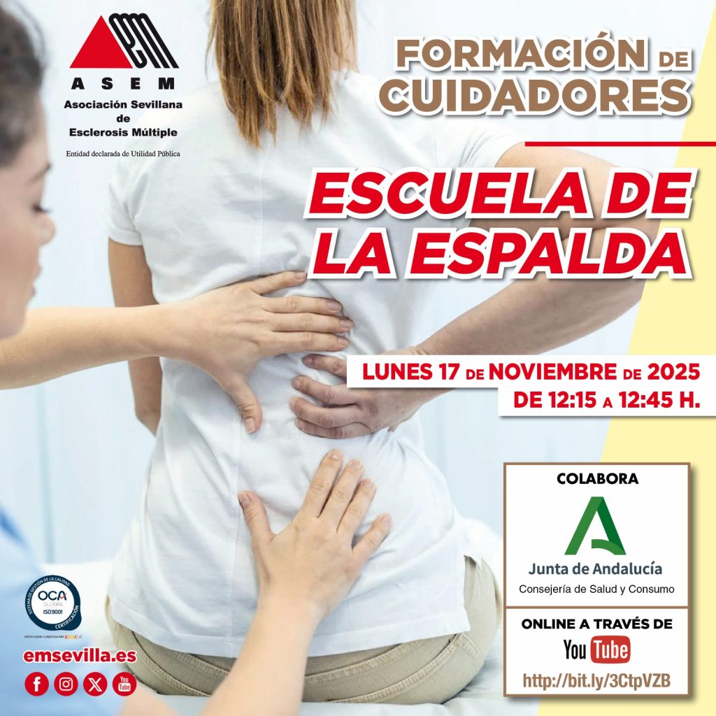 Por eso, el próximo lunes 17 de noviembre de 2025, te invitamos a participar en nuestro taller online «Escuela de la Espalda», una sesión práctica y formativa dentro de nuestro programa de formación para cuidadores.
