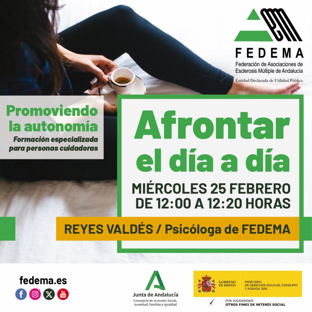 Continuamos con el programa “Promoviendo la Autonomía”, el 25 de febrero, de 12:00 a 12:20 h, veremos cómo AFRONTAR EL DÍA A DÍA con Reyes Valdés (psicóloga).