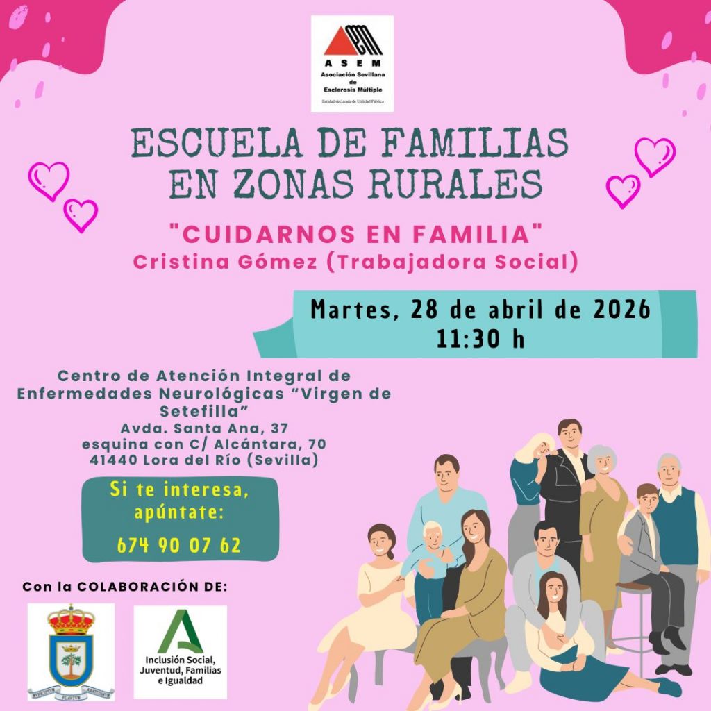 Programa “Escuela de Familias en zonas rurales”, este mes de abril, Cristina Gómez (trabajadora social) nos hablará sobre cómo «CUIDARNOS EN FAMILIA», en el Centro de Atención Integral de Enfermedades Neurológicas (Lora del Río).